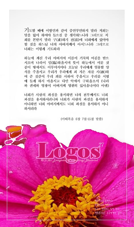 기도할 때에 이방인과 같이 중언부언하지 말라 저희는 말을 많이 하여야 들으실 중 생각하느니라 그러므로 저희를 본받지 말라 구(求)하기 전(前)에 너희에게 있어야 할 것을 하느님 너의 아버지께서 아시느니라 그러므로 너희는 이렇게 기도하라