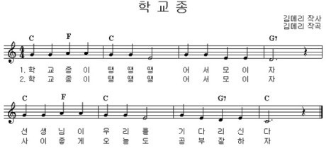 「학교종」은 1학년 음악책 첫 번째 곡이었다. 두번째 곡은 「봄나들이」, 세번째는 아마도「태극기」나 「송아지 」였을 것이다. 음악책을 하루에도 몇번씩 하교후 훑어보고 또 보고 보았던지, 슬픔이란 오간데도 없던 행복의 순간들이었다.