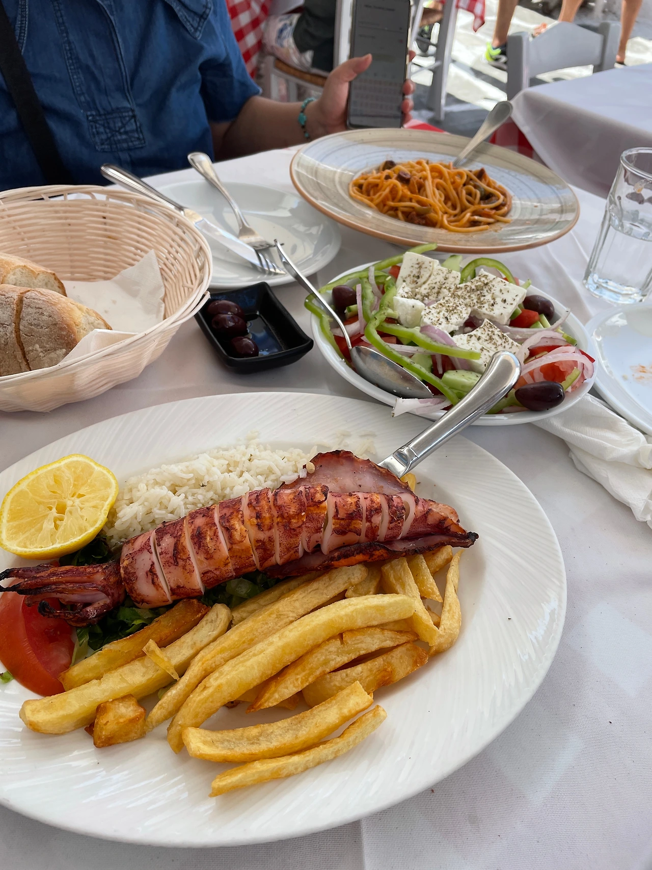 그리스는 음식을 주문하면 5%최소 팁을 계산해야 해요 그리고 그리스 물가 장난 아니구요 관광지답게 친절함 속에 돈 쓸어 가는게 눈에 보여요.