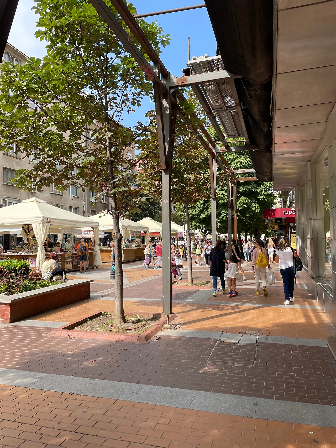 오늘은 오페라극장 같은데 넓은 광장이 있어 나가봤는데요, 도서관련 행사를 비토샤 거리 끝까지 하길래 주욱 걸어가 보았습니다. 제니맘 말로는 여기가 젤 중심가래요. 젊은 남녀가 짝을 찾으러 나와 벤치에 앉아 있는거 같기도 하고 거지도 있고 예쁜 카페와 옷집이 약 1키로 가까이 이어집니다.