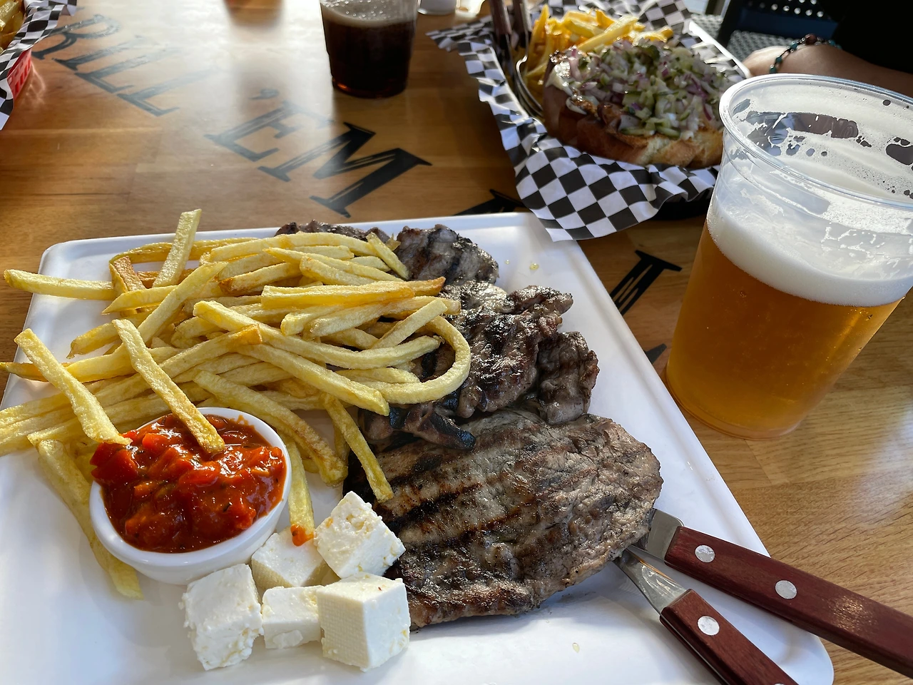 Vivenda? 라고 정육점하고 식당하고 같이 해요. 파라다이스몰에서 걸어서 버스 두 정거장 정도인데 갈 때는 버스타고 올때는 걸어 오면서 푸드 코트 같은데도 구경했어요. 음식은 이세상 맛이 아니에요 너무 맛있습니다. 맥주도 독일 맥주(독일에서 마셔 봄) 맛 이에요..