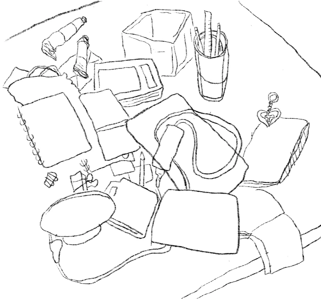 우선 나는 항상 책상이 더럽기 때문에 책상을 가장 먼저 상상하게 되는데 실제 나의 책상에는 노트북, 연필꽂이, 포스트잇, 읽다 만 책, 드로잉북 등이 있다.