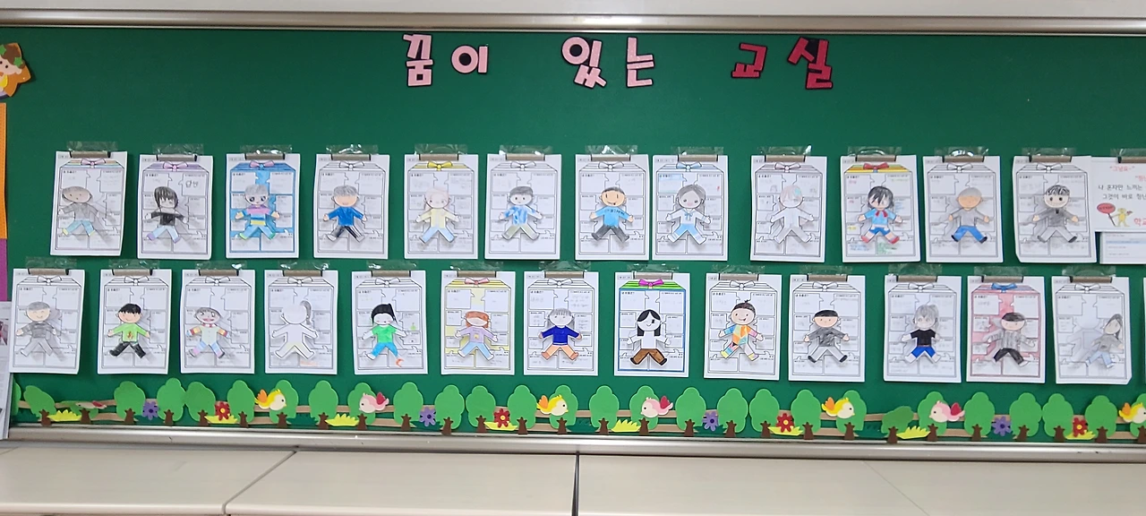 마음 같아서는 더 많은 걸 걸고 싶지만, 항상 조화가 중요하다. 그리고 시기적으로 맞는 것도 중요하다. 교실 전체를 둘러보아 너무 번잡하면 빼고, 너무 허전하면 추가하는 게 좋다.