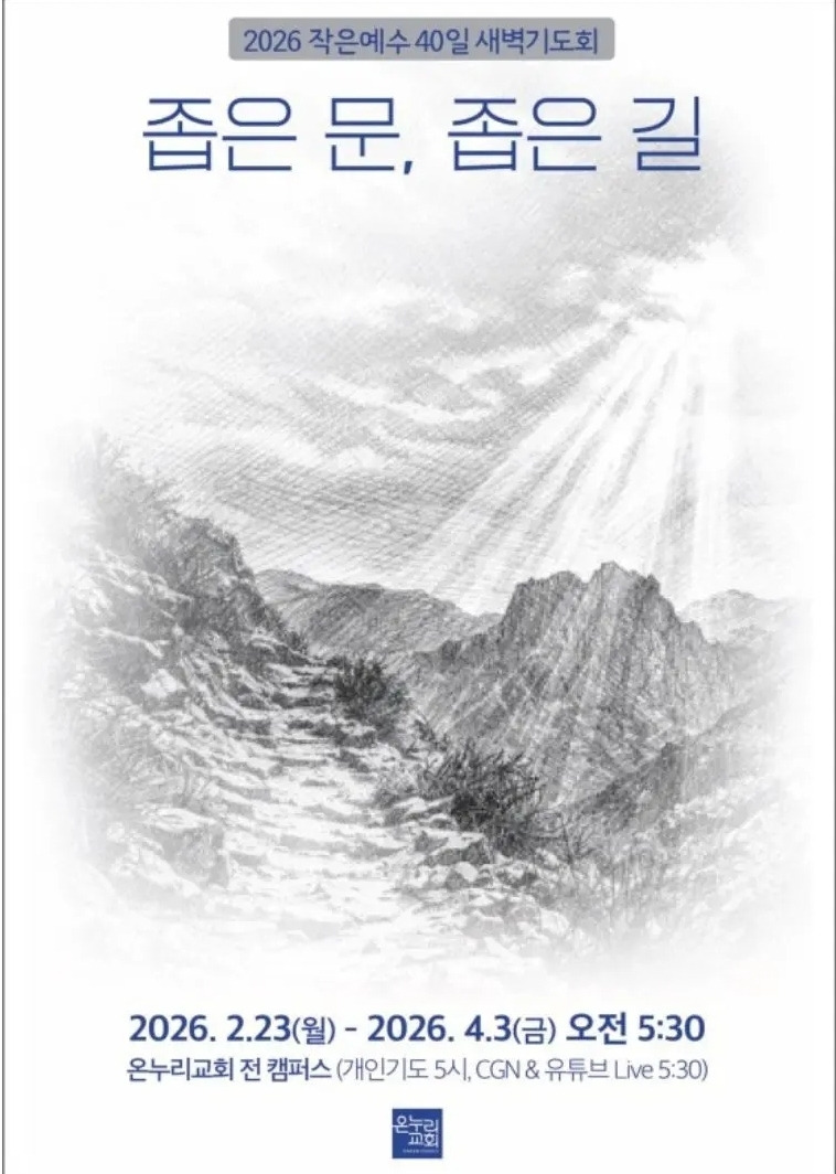 내가 40세 정도까지 다녔던 예전 신문로교회는 회사들만 가득한 광화문 상가에 있어서, 교인들은 다 30분 이상씩은 차를 타고 와야 하는 교회였다. 나는 그 근처에 살았기에 걸어 다녔지만 말이다. 그래서 교회에 새벽기도회가 없었다. 그러다 보니 아쉬움이 있었고, 교회를 옮길 때, 예배도 그렇지만 새벽기도회가 있고 걸어 다닐 수 있는 곳을 기준으로 삼고 온누리교회로 정했다. 온누리교회는 특별 새벽기도회가 정말 40일!!!이다. 예수님의 40일 금식을 의미하는 건지, 40년 광야를 떠올리는 건지, 이제는 사순절 기간과 같이 하는데 바뀌기 전에도 40일이었으니, 어쨌든 한 달이 넘는 40일은 결코 짧지 않다.