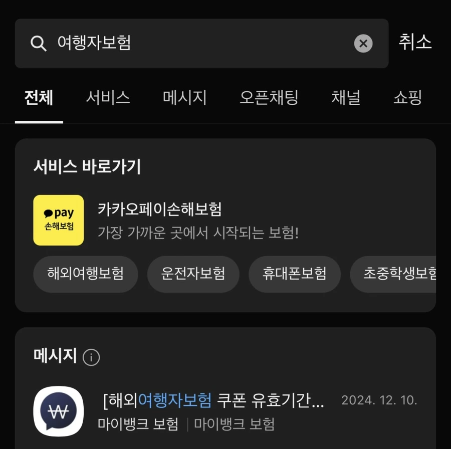 개인적으로는 카카오톡으로 바로 연결되는 카카오페이 여행자보험 추천합니다.