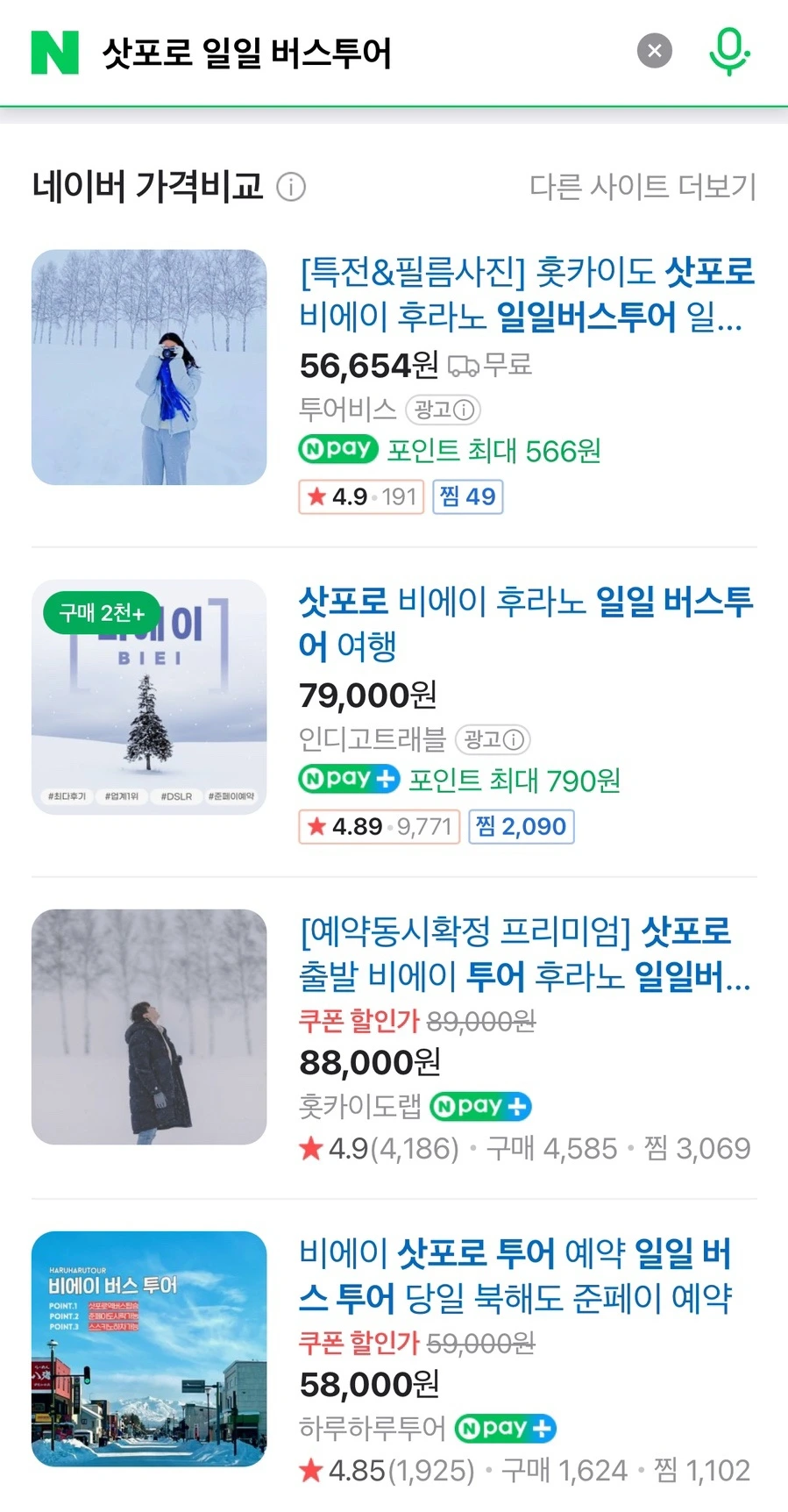 검색창에 '삿포로 일일 버스투어'라고 검색하면 여러 상품 나오고요.