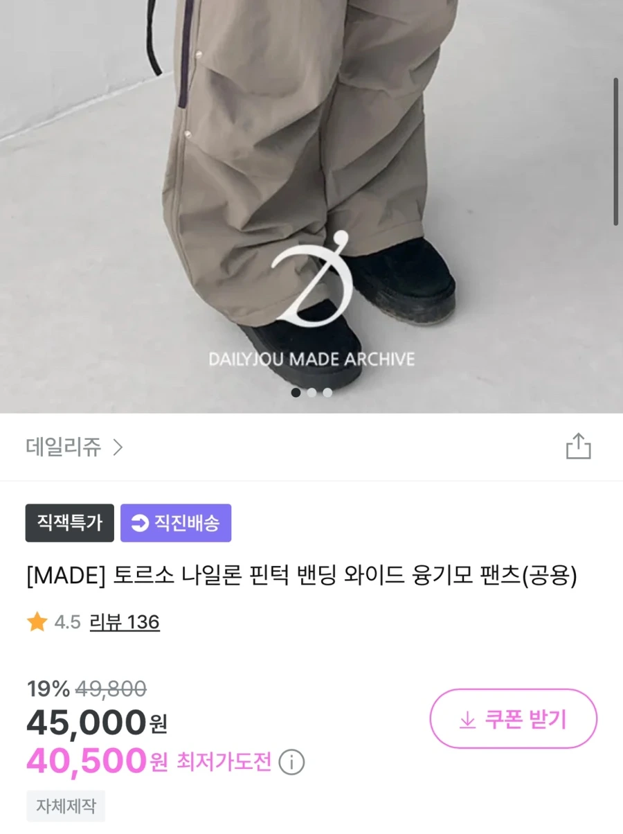 '데일리쥬'라는 쇼핑몰에서 판매하는 이 바지입니다.