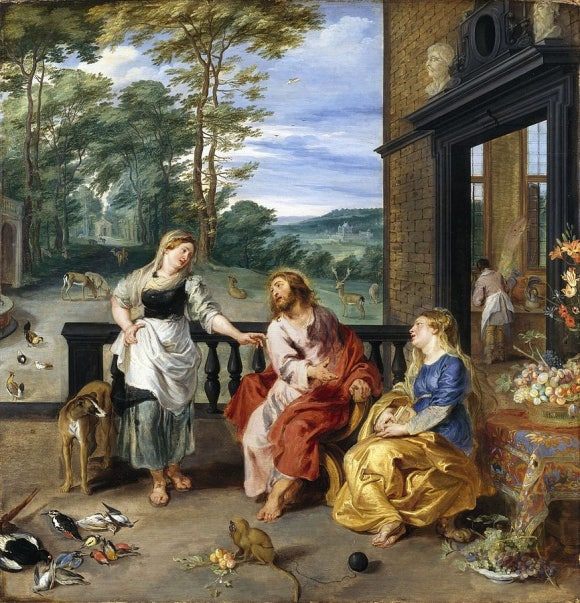 Jan Brueghel the Younger (1601-1678) and Peter Paul Rubens (1577-1640), Christ in the House of Martha and Mary (c.1628) oil on oak wood ; 64 × 61.9 cm, National Gallery of Ireland