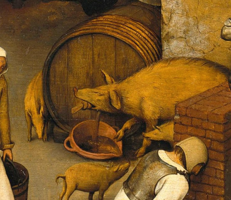 그 다음 살펴 볼 부분의 주인공은 인간이 아니라 돼지다. '암퇘지가 마개를 연다'는 표현은 '태만은 재난을 낳는다'라는 의미라고 한다.
