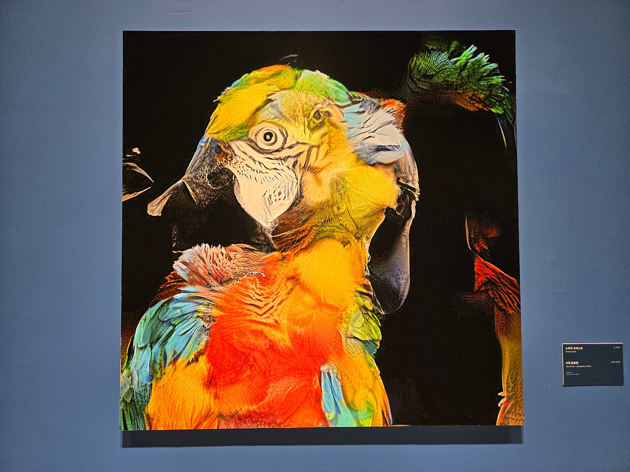 소피아 크레스포 작가의 작품은 상당히 독특하고 인상적이었다. 이 작가는 기술과 다른 학문의 교차점을 탐구하였다. 소피아 크레스포 작가는 <신경 동물원>이라는 작품을 통해 인간의 창의성이 작동하는 방식, 즉 익숙한 요소를 새롭게 재조합하는 방법의 과정에 대해 탐구하였다. 설명에 따르면, 벽면에 걸려 있는 작품들을 보면, 상당히 익숙하고 일반적인 자연물처럼 보이지만, 사실은 현존하지 않는 물체라고 한다. 작품 속의 이미지들은 자연 풍경 데이터 세트에서 추출한 요소들을 인공지능이 합성하고 재배열한 결과물이라고 한다. 나만해도 처음에는 생물 표본이거나 현미경으로 들여다 본 생물체의 모습인가했기에 이 모든 이미지들이 현존하지 않는 이미지라고 해서 충격이었다. 이 작품을 통해 우리의 뇌가 보이는 바를 기존의 생명체로 정의하려고 시도한다는 것을 깨달았다. 우리는 받아들이는 이미지들을 우리가 이미 알고 있는 이미지로 대입하여 인지한다는 것이다. 작품들을 통해서 인간 뇌의 작용을 깨닫게 되는 흥미로운 경험이었다.
