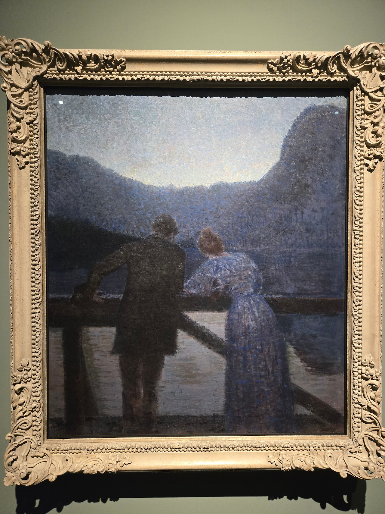 에른스트 슈퇴어의 "호숫가의 남녀" 작품도 흥미로웠다. 뒷모습을 그린 인물화의 경우, 독일 낭만주의 대표작가인 카스파 다비드 프리드리히가 주로 많이 그렸던 스타일이다. 이 작품에서는 북유럽 특징의 정서와 낭만주의적 분위기와 함께 프랑스 인상주의 및 점묘파의 영향이 보인다.이는 비엔나 분리파 작가들이 다양한 예술 사조를 수용하고 재해석했음을 보여주는 좋은 예라고 생각한다.