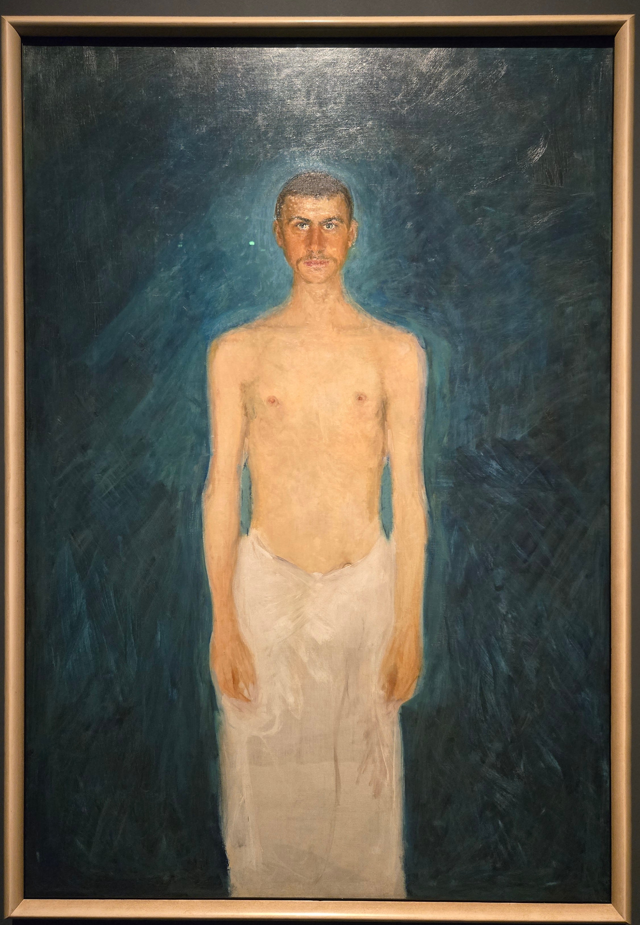 리하르트 게르스틀이라는 작가는 이번 전시를 통해 처음 접했는데 강렬한 작품들이 많아서 놀랐다. 특히 자화상의 경우, 어두운 청록색 벽을 배경으로 마치 샤워를 갓 마친 것 같이 허리 아래쪽으로 타월을 두른 남성의 초상화로 그렸는데 눈빛이 무척이나 강렬하다.