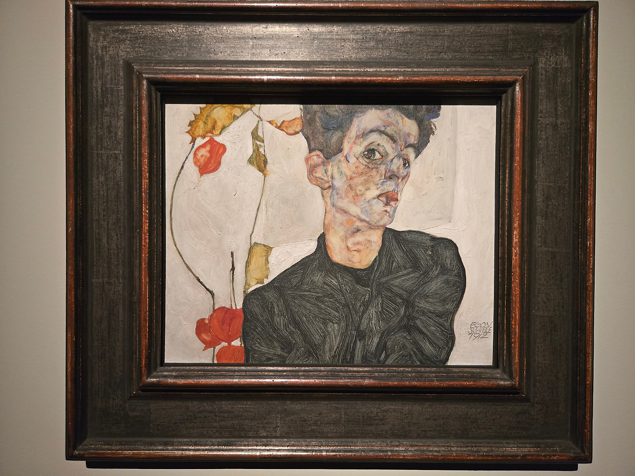 이 섹션은 주로 에곤 실레 (Egon Schiele: 1890-1918)의 작품들이 소개되어 있었다. 이번에 소개된 작가들 대부분은 스페인 독감으로 1918년 세상을 떴다. 그 중 하나도 에곤 실레인데, 갓 결혼한 신혼인 상태에서 그의 신부가 스페인 독감으로 세상을 뜬지 사흘만에 자신도 스페인 독감으로 사망하였다. 만 서른살도 되기 전에 요절한 작가임에도 걸작들을 많이 남겼는데, 이번에는 그의 대표작으로 알려진 <꽈리 열매가 있는 자화상>을 위시해서 그의 드로잉과 작품들이 전시되어 있었다.