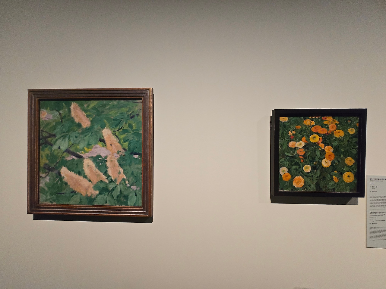 크지 않았지만 인상적이었던 작품 2점이 나란히 전시되어 있었다. 디자인으로만 알고 있어서 회화 작품이 콜로만 모저의 작품인 것이 의외였다. 설명문대로 장르를 넘나들며 활발히 활동한 예술가다왔다. 특히 <마리골드>라는 작품은 색감과 구성이 뛰어나서 계속 보고 싶은 작품이었다.