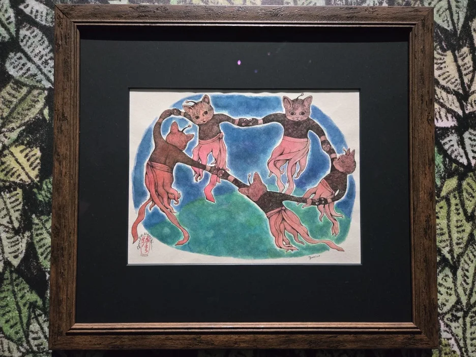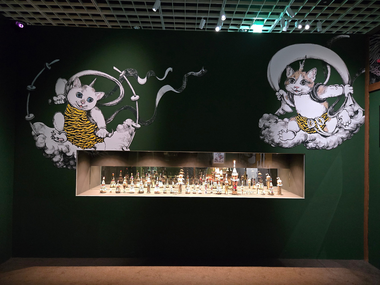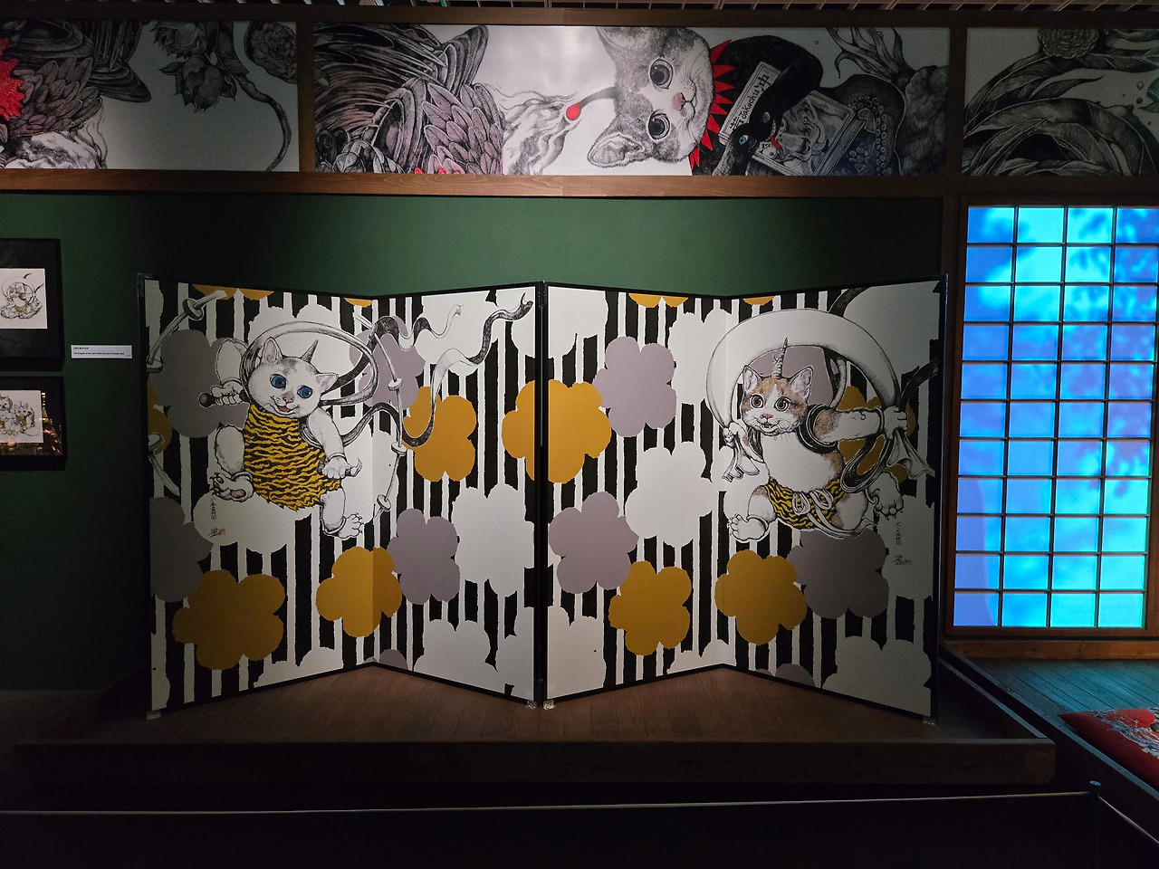 아래는 18세기 린파를 창시한 오가타 코린의 풍신뇌신 작품을 참조하여 그린 작품이다. 너무나도 유명한 작품인데 유코 히구치는 그녀의 대표 캐릭터인 고양이로 변형시켜 표현했다.