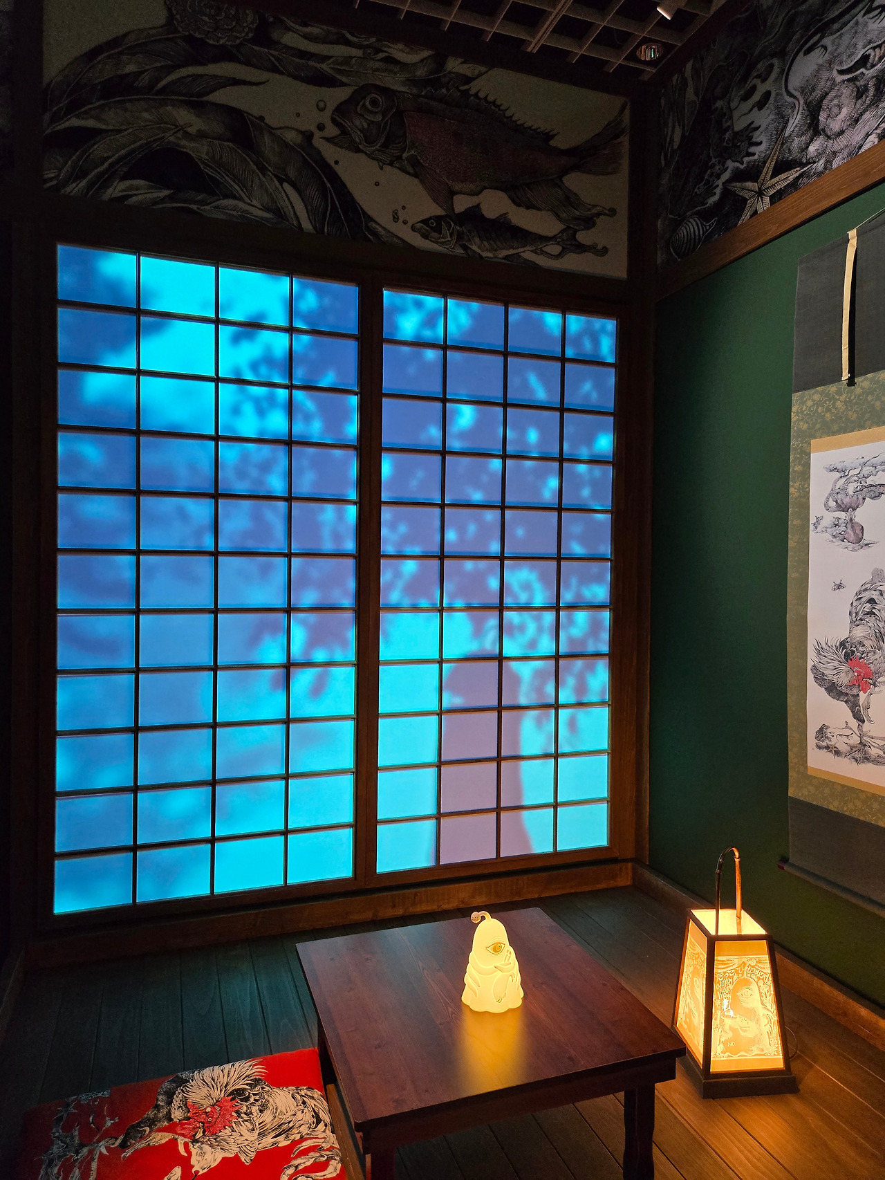 개인적으로 괴기스러운 분야에서 특히 상상력 풍부한 일본 미술이라고 생각하는데 유코 히구치의 상상력의 영역에도 일본적인 DNA가 녹아 있는듯. 동영상 촬영이 안되어서 여기서는 표현이 안되지만 아래 달빛 비치는 창 밖으로 요괴가 왔다갔다 하는 방이다.