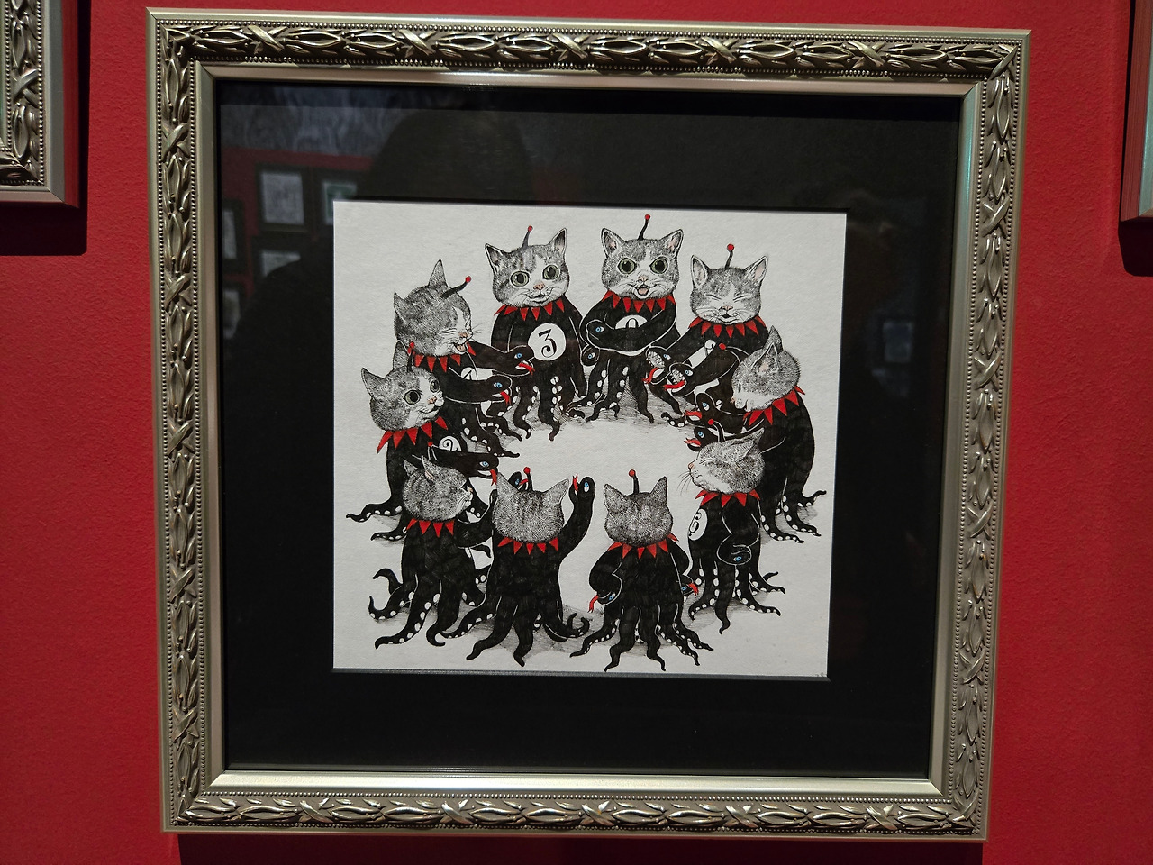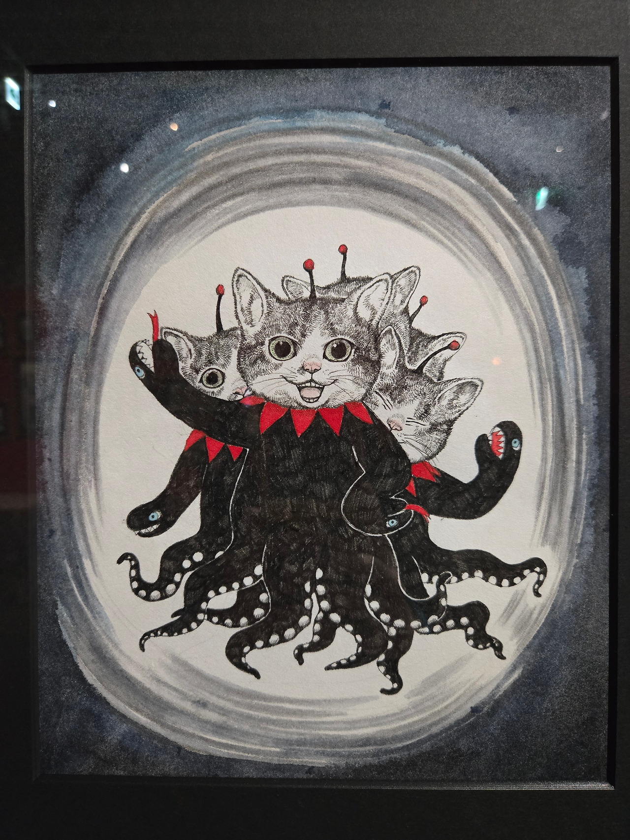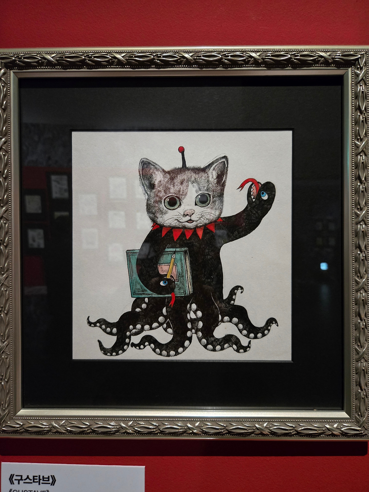 유코 히구치는 대다수의 일본사람들처럼 고양이를 좋아하나보다. 그녀의 작품 중 가장 인상적인 캐릭터는 구스타브였는데, 고양이의 몸에 뱀의 팔, 그리고 문어의 다리를 한 생물이다. 작가가 자신의 페르소나라고 했다고 알려져 있는데 보면 볼수록 신기한 인물이다. 게다가 암컷인지 새끼들도 10마리나 있다. 실제로 보면 징그럽다고 꺄아까아 그랬을지도 모르겠지만 상상의 나래를 펴며 생각하니 귀엽고 신기하다. 왜 이런 생물을 자신의 페르소나로 삼은 것일까? 궁금하다.