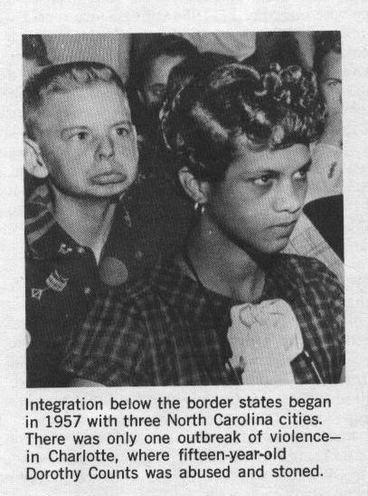 1957년 노스 캐롤라이나의 15세의 소녀가 백인 학교에 등교할 때에도 그랬다. 뒤에서 우스꽝스러운 모습으로 흑인 소녀를 조롱하던 소년은 자신이 잘못된 일을 하고 있다고 생각하지 않았을 것이다. 그리고, 죄 없는 소녀에게 침을 뱉고 돌을 던지던 사람들도...