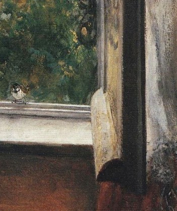 이 작품의 방점은 창가에 내려앉은 작은 새 한마리.