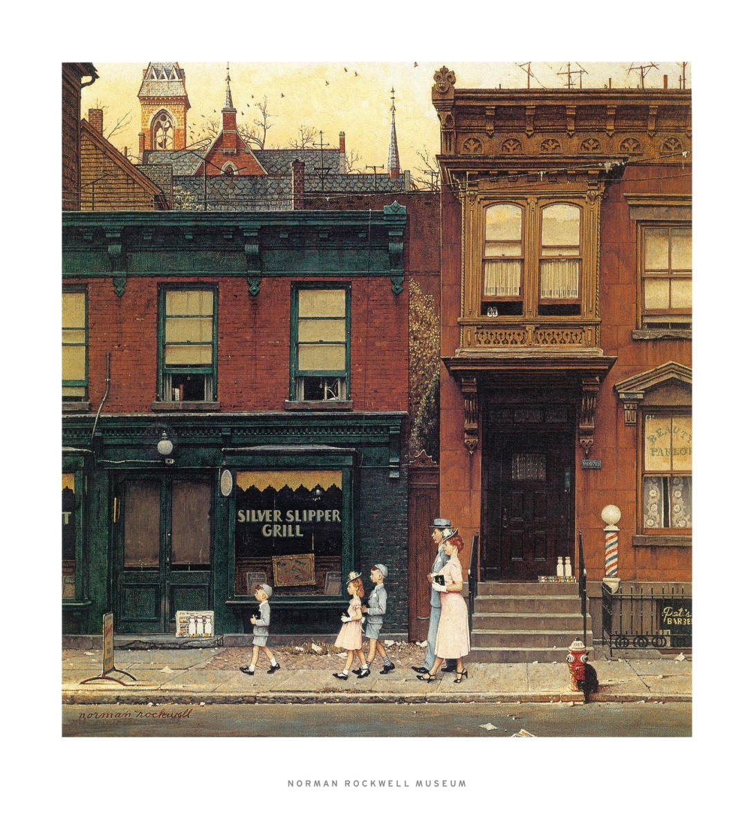 위의 작품은 <<새터데이 이브닝 포스트>> 1953년 4월4일자 표지에 사용된 작품이다. 제목이 <교회가는 길>이라는 작품인데 교회를 가는 일가족의 모습을 그린 것이다. 다소 경직된 모습으로 그린 가족들의 모습은 경건하고 신앙심 깊은 이들의 모습을 유머를 담아 표현한 것이다.