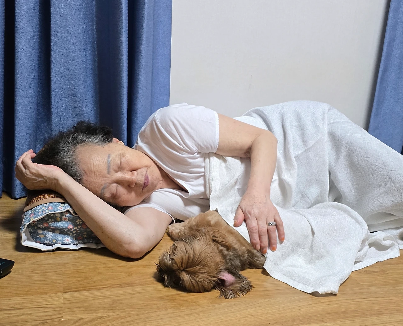 심상치 않은 기분이 들어 얼른 집에 가봤더니 머리부터 발끝까지 방금 물속에서 나온 것 마냥 땀으로 푹 젖은 채 마루에 미동도 없이 누워계셨다.