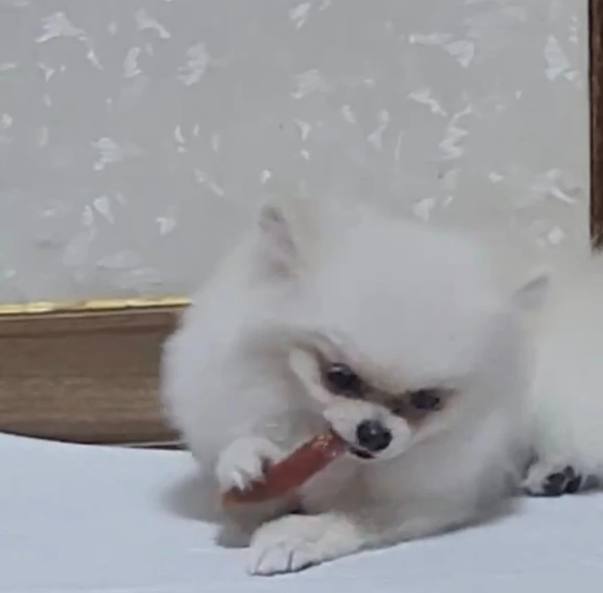 아주 신났을 거다. 간식 들고 구석에 가서 그 조그만 다리로 꽉 붙잡고 오물오물 야무지게 먹는 모습이 눈에 선하다.