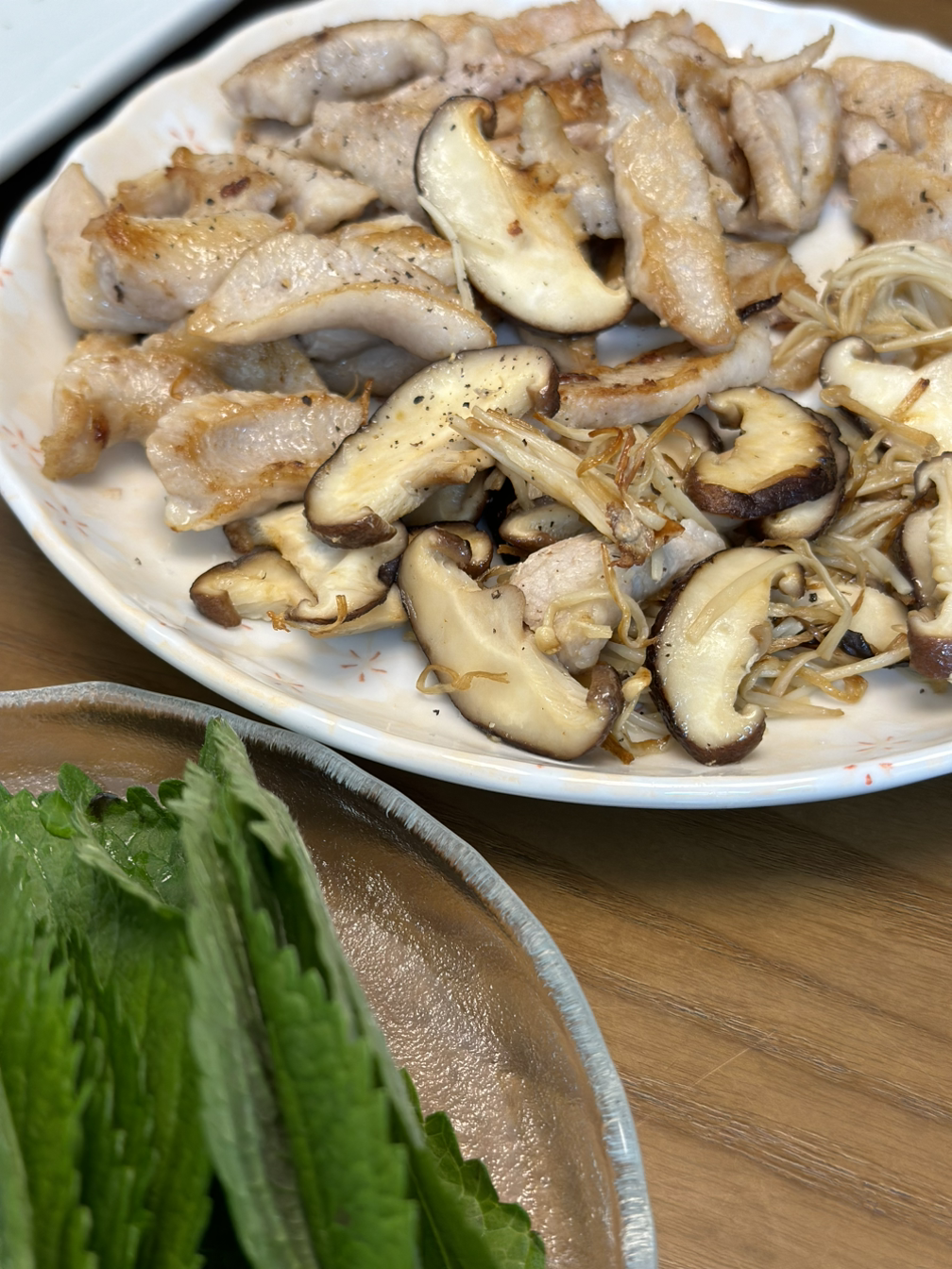 항상 담음새나 사진 실력이 맛을 따라가지 못하는 현실이 슬프다. 항정살에 팽이버섯과 표고버섯을 구워 깻잎에 싸 먹으니 별 것 한 것 없지만 먹음직스러운 한 상이 되었다. 주먹밥에는 남은 멸치볶음을 넣었더니 둘째 녀석이 매우 좋아했다.