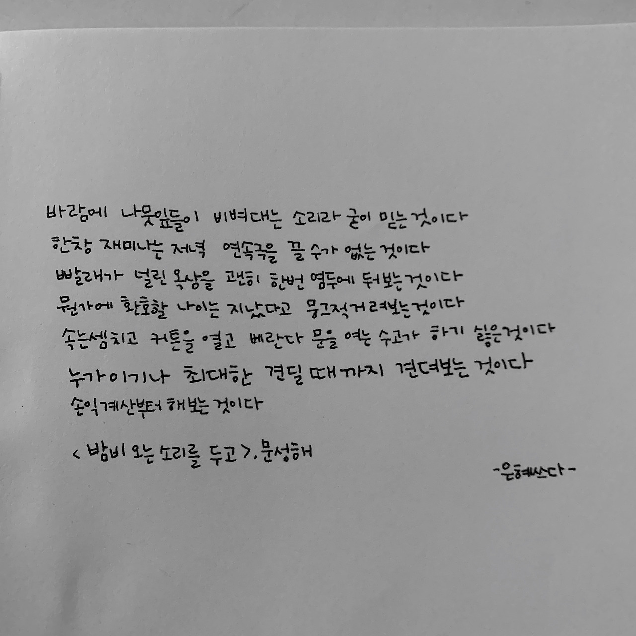 바람에 나뭇잎들이 비벼대는 소리라 굳이 믿는 것이다