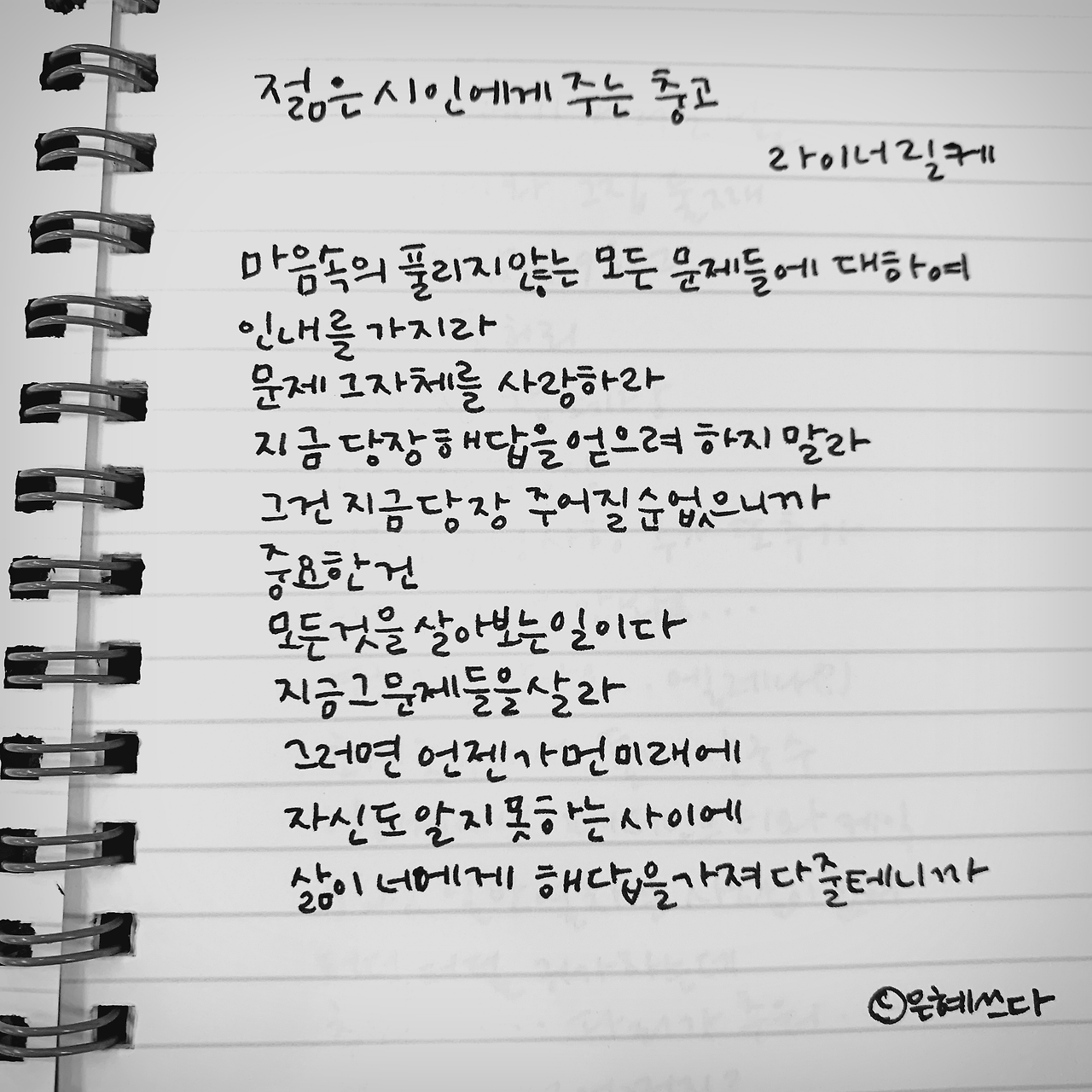[하루 한 편 시 필사] 젊은 시인에게 주는 충고