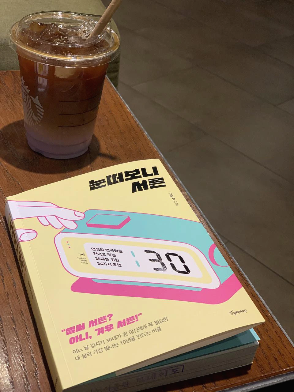 오후 2시 이후부터 회의만 연달아 4탕을 뛰고 나니 밥을 차려먹을 기운도 남지 않았다. 그저 단 음료와 바깥 공기가 필요했다. 책 하나를 들고 나섰다. 얼마전 지인이 쓴 신간 <눈 떠보니 서른> 이라는 책이다. 정말 시간이 어디로 갔는지. 눈 떠보니 오늘이다. 서른살이라도 감지덕지.. 지만 지금 할 애기는 그건 아니고. ㅎㅎ