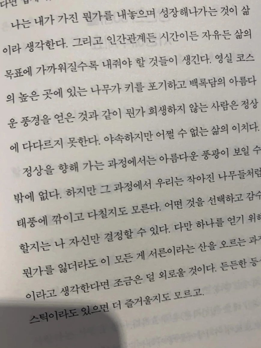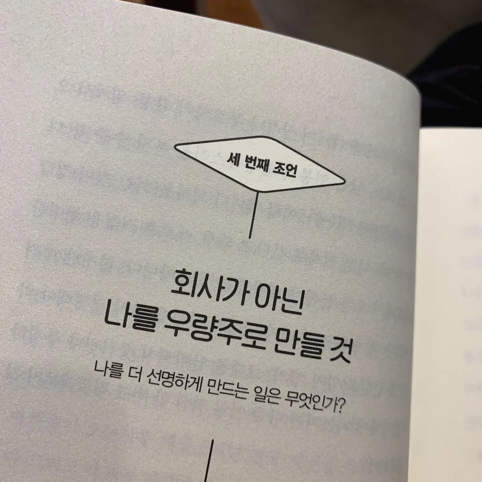 이 책은 저자가 회사에 몸담으며 겪었던 바와 생각하는 바가 잘 녹여져있다. 사회생활을 하는 사람들이 흔히 겪는 그 나이 또래의 고민에 대한 조언들이 특히 오늘 나에게도 와닿았다. 일에 치여 문득 흐려진 내 존재를 되찾기 위해, 심호흡 한번 하고 다시 붙잡고 나아가면 좋을, 약간 흔들린 멘탈을 추스리기 좋은 조언들이 가득 들어있었다.
