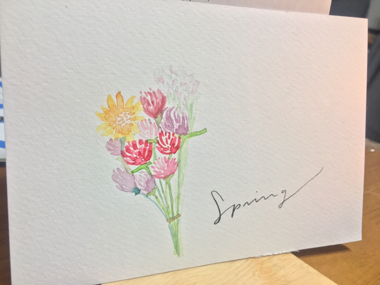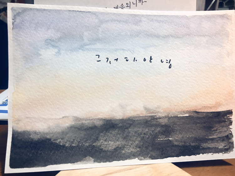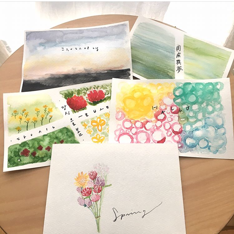 봄을 기다리며, 오랜만에 글씨수업 시간에 그림 작업과 글씨를 곁들여 엽서 만들기를 했습니다.