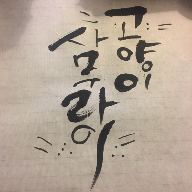 그래서 글씨에 고양이 특징과 사무라이, 무사의 거친 느낌도 약간 녹여보려고 했다.