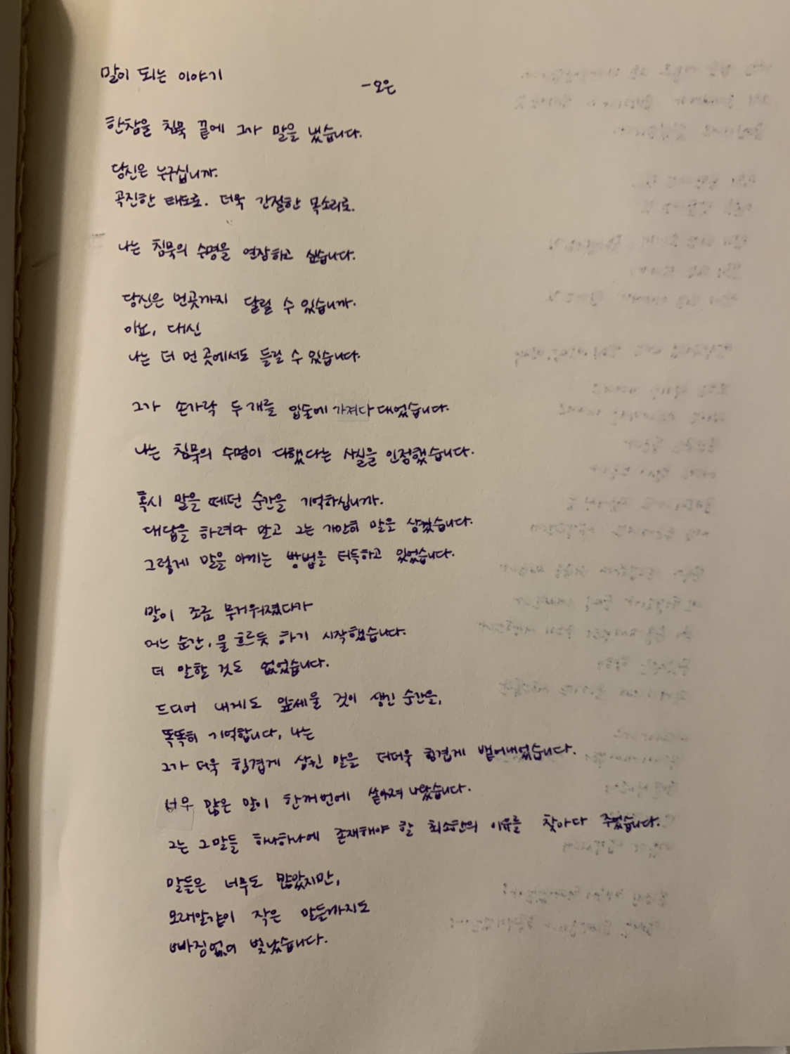 오늘의 시는, 오은 시인 특유의 장점이 여지없이 나오는 '말이 되는 이야기' 라는 작품.