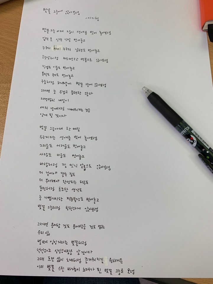 오늘의 시는, 회식 때문에 인증 게시판의 일일 글을 점심에 필사하는 것으로....