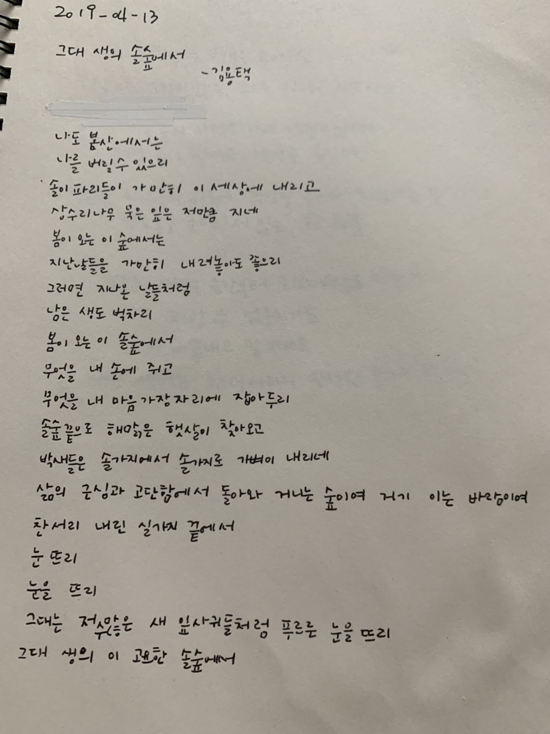 2019.04.13 그대 생의 솔숲에서 - 김용택