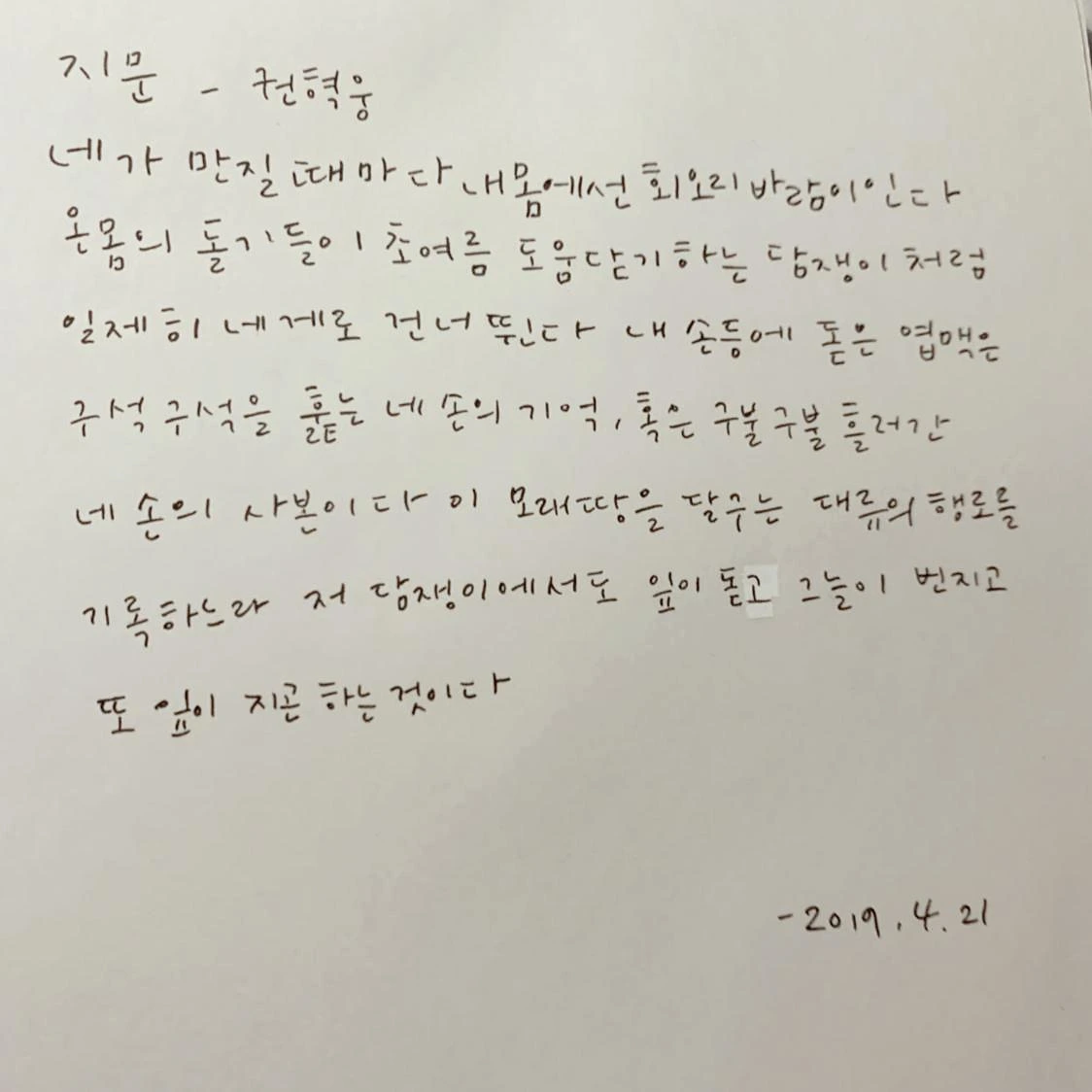 얼른 올려야지 하니까 글씨가 중간에 바뀌어도 바로잡을 생각도 못 하고 쓴다. 글씨의 처음과 끝이 같아야 하는데 그게 이렇게 힘들다. 아직 갈 길이 멀다.