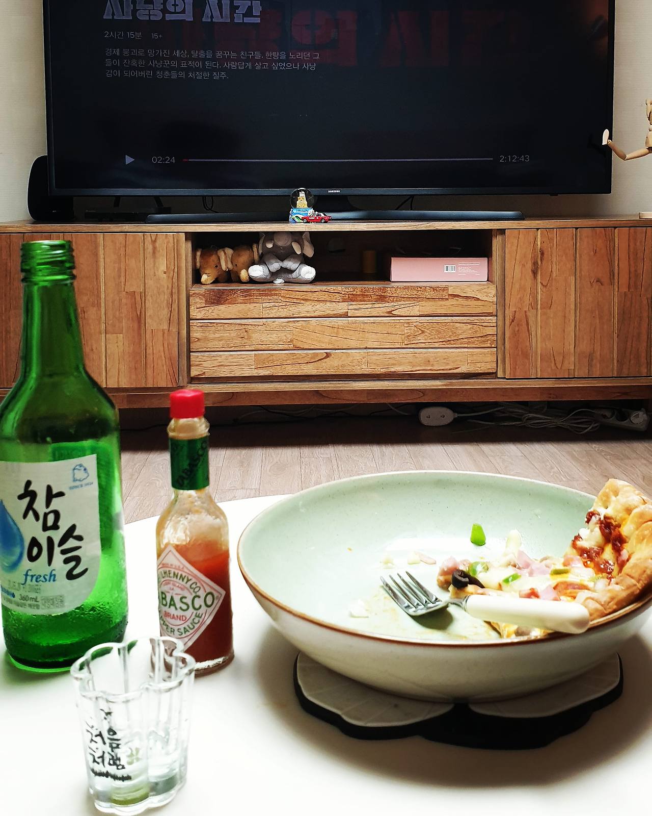 오늘 밤에는 치킨이라도 시켜먹어야 한단다. 회사 친한 형님 말이 내일이면 새로운 세계가 시작될 것이니 오늘 밤은 너만을 위해 무엇이라도 해야 한단다. 치킨 대신 먹다 남은 냉동 피자와 먹다 남은 소주병을 꺼냈다. 보고 싶던 넷플릭스 영화도 틀어놓고 혼자서 조용히 총각 파티하듯 밤을 지새웠다. 아이가 온다고 이 생활을 못할 것 같지 않았다. 아이가 잠들고 난 다음 보고 싶은 영화도 보고 술도 한잔하면 되지 왜들 호들갑인지 싶었다. (몇 시간도 채 되지 않아 그 생각은 판타지일 뿐이라는 걸 알았다.)