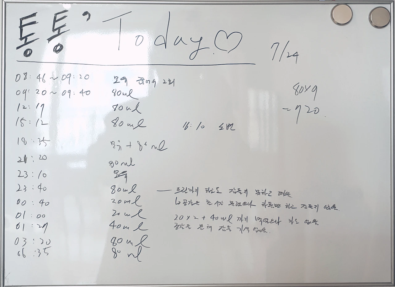 아들이 고개를 든다. 울부짖는다. 먹이를 준다. 그럼에도 불구하고 울음은 더욱 커져간다. 마치 늑대의 울음소리와 닮았다. 아이를 안고 한참 동안 골반을 씰룩거려 보지만 아이는 몸을 배배 꼬며 다시금 울음을 터뜨린다. 2시간이 지나 수유 텀이 다시 돌아왔다. 이번엔 제발 먹고 바로 잠들어라. 헛된 기대를 또 한 번 걸어본다.