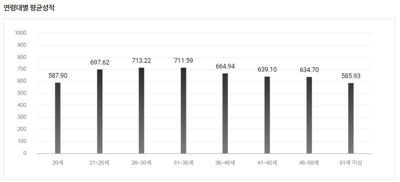 2020.10.10 토익 연령대별 평균 성적 from ETS. 이놈들 생각보다 잔인한 놈들이다.
