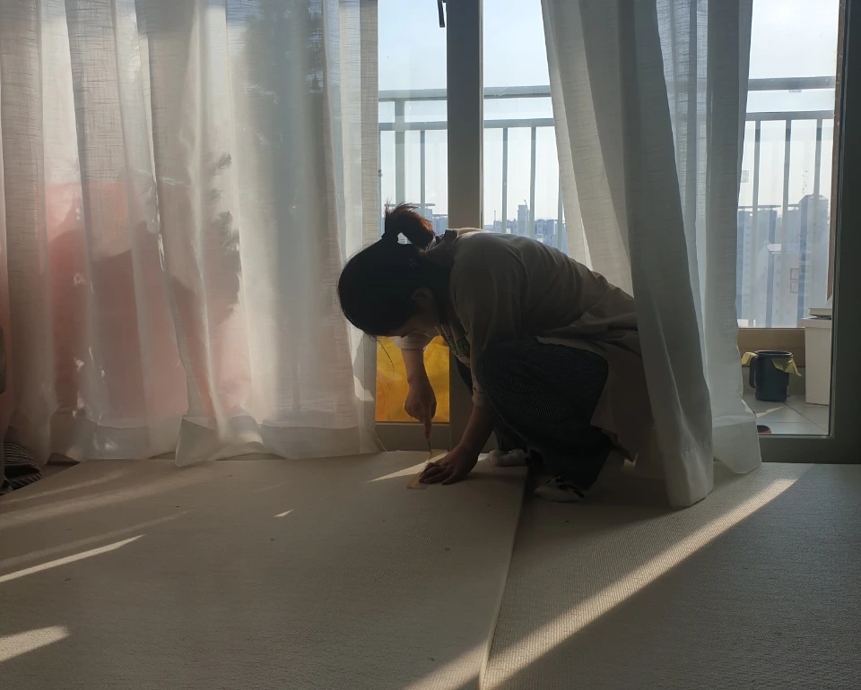 그랜드 피아노가 맘껏 발망치 부릴 바닥을 만드는 엄마