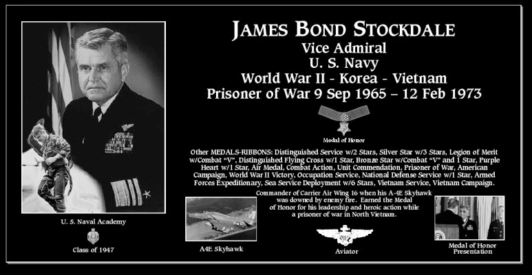 제임스 본드 스톡데일(James Bond Stockdale, 미 해군 중장 예편, 1923 ~ 2005)은 1965년 미 해군 중령 시절, 베트남전에 A-4 스카이호크 공격기를 몰고 공습 임무에 참가했다가 격추되고 만다. 이후 8년간 포로수용소 생활을 지냈다. 이 과정에서 스톡데일은 비좁은 독방에 감금되고 수많은 고문을 겪는 등 상상 이상의 가혹한 환경에서 생활하게 되었고 폭행으로 왼쪽 다리가 부러지고 팔이 마비되어 평생 장애를 갖게 되었다. 그는 이 와중에도 동료 수용자들의 결집을 이끌어내어 가혹한 포로 생활을 이겨내는 구심점이 되었다.
