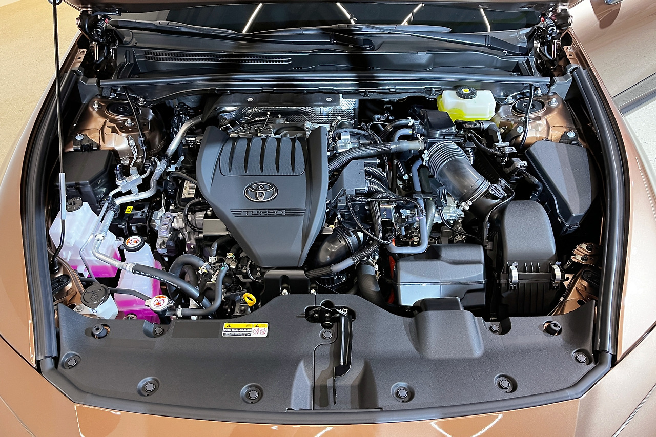 2.4L 듀얼 부스트 하이브리드 모델은 토요타 하이브리드 처음으로 선보이는 개념의 하이브리드 시스템을 씁니다. 앞바퀴쪽에는 2.4L 가솔린 터보 엔진과 6단 자동변속기를 중심으로 구성한 하이브리드 시스템을 얹었고, 뒷바퀴쪽에는 새로 개발한 구동용 고성능 모터와 수랭식 냉각 시스템을 포함해 모터와 인버터, 트랜스액슬이 통합된 e-Axle로 이루어진 E-Four Advanced 네바퀴굴림 시스템을 씁니다. E-Four Advanced 네바퀴굴림 시스템은 주행 상황에 따라 앞뒤차축 구동력 비율을 100:0에서 20:80까지 빠르게 조절할 수 있고, 상황에 따라서는 뒷바퀴굴림 차에 가까운 주행 특성을 구현할 수 있습니다. 아울러 가변제어 서스펜션(Adaptive Variable Suspension, AVS)이 설치되어 승차감과 핸들링 특성을 최적화할 수 있습니다.