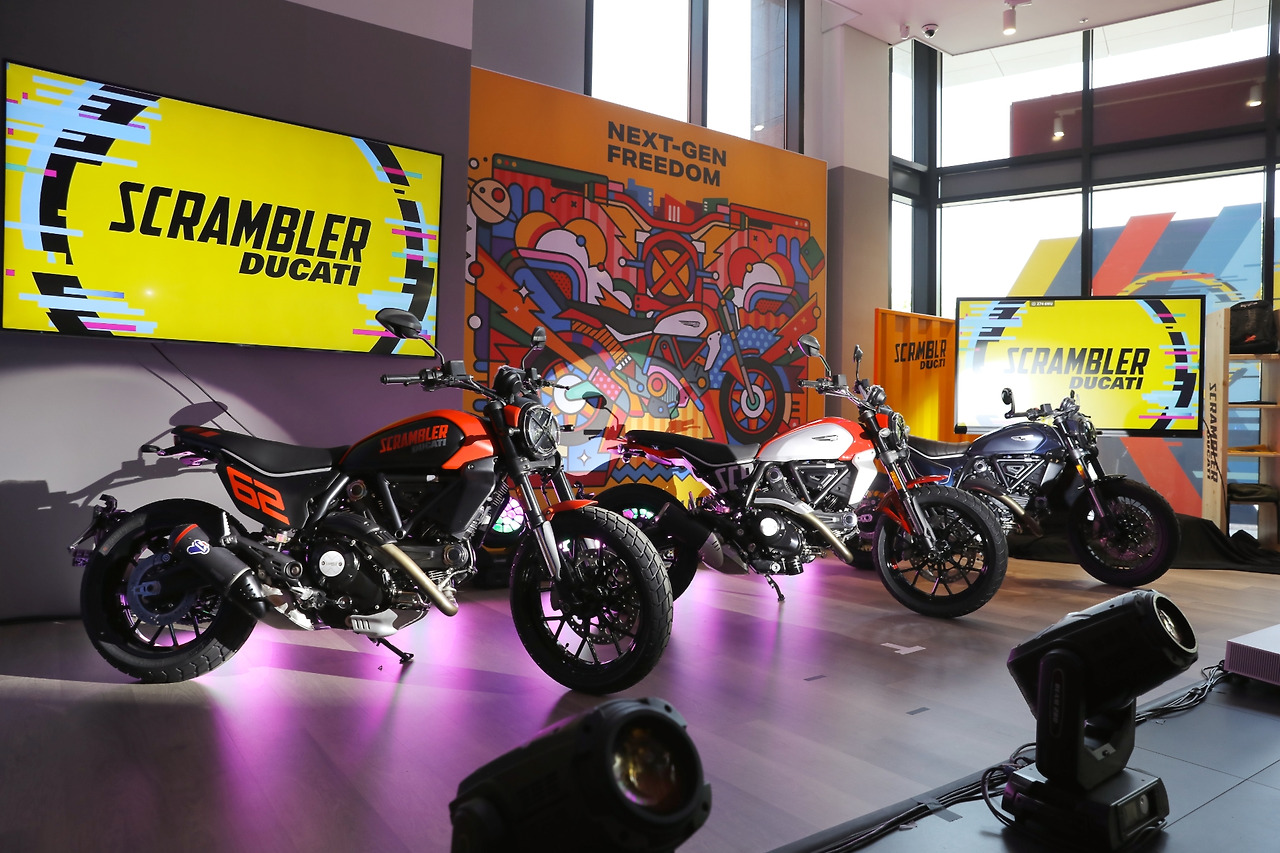 두카티 스크램블러(Scrambler)는 1960~70년대에 두카티가 히피 문화에 뿌리를 둔 라이프 스타일에 초점을 맞춰 만들었던 모터사이클을 현대적 감각으로 재해석해 2015년에 부활한 모델로, 2세대 모델은 2022년 11월에 열린 밀라노 모터사이클 쇼(EICMA)에서 데뷔했고 이번에 우리나라에서 아시아 처음으로 공개되었습니다. 공개 행사가 열린 두카티 송도점은 2023년에 새롭게 문을 연 두카티의 국내 6번째 쇼룸입니다.