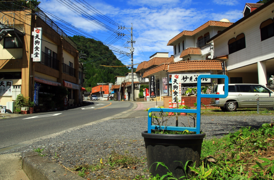잠시 동안 일본 시골행 버스에 몸을 싣고 달려 도착한 묘켄 온천은 조그마한 온천마을이다. 마을을 가로지르는 계곡을 따라 일본 전통식의 온천장인 소박하게 보이는 료칸들이 들어서 있는 마을의 모습을 감상하면서 올레 이정표를 따라 하천을 건너 식당, 타시마혼칸 오소쿠지도코를 찾아 들어갔다. 이 식당은 타시마혼칸이라는 온천장에 딸린 식당이다. 아는 한자라곤 물고기뿐, 생선구이로 짐작되는 메뉴를 시키니 이 지역의 향토음식 한 상이 나온다. 미소된장국과 생각보다 많이 주는 쌀밥 한 공기 그리고 생선뿐인 소박한 한상과 쥔장의 인상 좋은 미소를 반찬삼아 한 그릇 후딱 해치우고 길을 나선다. 주중이라 온천을 즐기러 온 일본인 여행객도 없는 마을에 홀로 산속 올레길로 길을 나서는 발걸음이 여유롭다.
