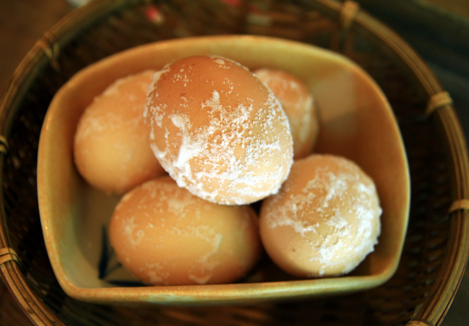 묘켄 온천 마을 규슈올레 시작을 알리는 표지만과 묘켄 온천장, 그리고 타시마혼칸 오소쿠지도코의 향토음식 그리고 온천에 삶은 달걀