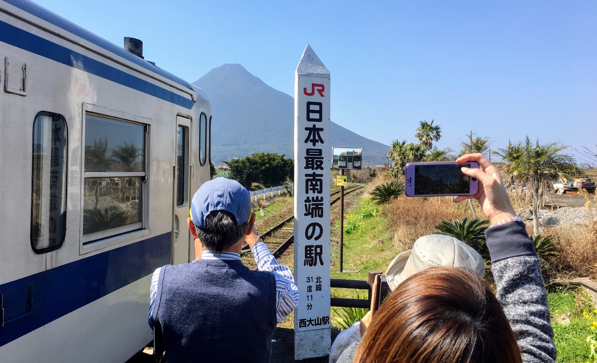 JR 규슈 재래선 마쿠라자키행 직행편의 아침은 매우 분주했다. 정차하는 역마다 가고시마에서 시외로 출퇴근하는 직장인과 학생들이 쉴세없이 내리고 탄다. 조금은 시대에 뒤떨어진 듯한 교복 디자인이지만 흰마스크로 반쯤 가려진 얼굴에서 유일하게 보이는 학생들의 눈은 초롱초롱하기만 하다. 이들의 모습이 교복을 입고 미친듯이 지각하지 않으려 버스정류장으로 달려가던 예전 나의 모습과 오버랩되면서 시간의 무상함과 함께 일찍 학교에 가지 안아도 되는 현재의 나에게서 의미모를 안도감을 느끼다 보니, 기차는 아침햇살에 반사되어 반짝반짝이는 킨코만 해변을 달리고 있다. 가고시마 추오역을 떠난지 약 1시간 후에 기차는 이부스키역에 섰다. 그리고 15분 여를 더 달려 JR 최남단 역으로 알려진 니시오야마역에 도착해 여행자들을 내려 놓는다.