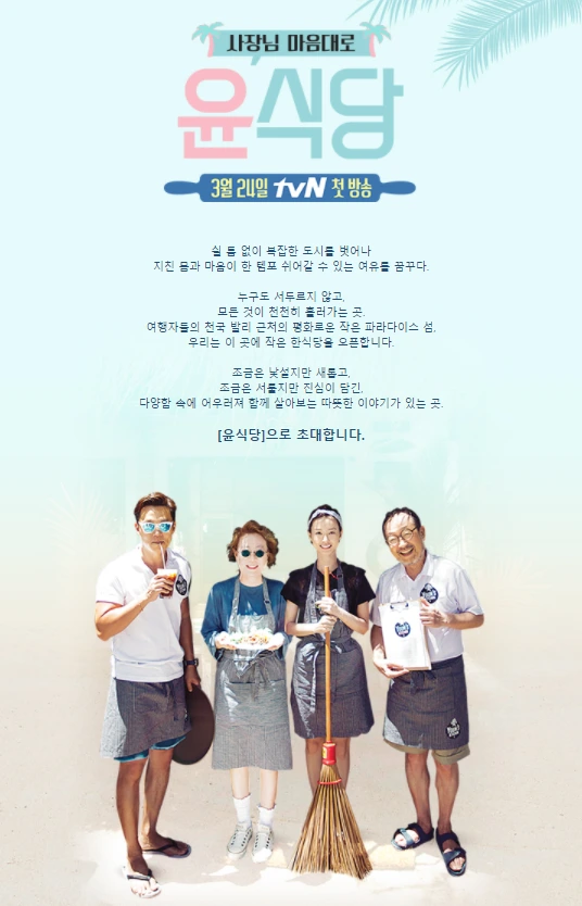 최근 tvN '윤식당'이 높은 시청률을 보여주면서 종방되었다. 시청률이나 화제성, 시즌2를 예고하는 듯한 뉘앙스 등 여러 모로 성공적으로 종료된 것 같다. 개인적으로도 매주 빠짐없이 본방사수를 해가며 열심히 챙겨봤던 프로그램이다.