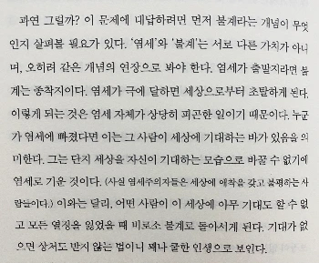 이 책은 나의 1차원적인 염세 마인드를 한 단계 업그레이드시켜주었다. 이전에는 현상에 대한 감정으로만 염세를 이해했는데, 이제는 좀 더 넓은 시야로 현상을 '관찰'할 수 있게 되었다고 할까.
