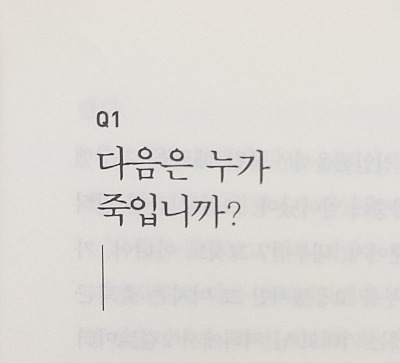 이 소설이 어디까지 이어질 지 모르겠다는 포기의 의미의 물음표인지, 혹은 또 다시 비밀스럽게 살인이 시작된다는 의미인지 몰라 두렵다. 그저 다시 이런 일이 일어나지 못하도록 문이 굳건하게 닫혔다는 의미였으면 좋겠다는 나의 희망사항을 마지막 장에 묻힌 채 책을 덮었다.